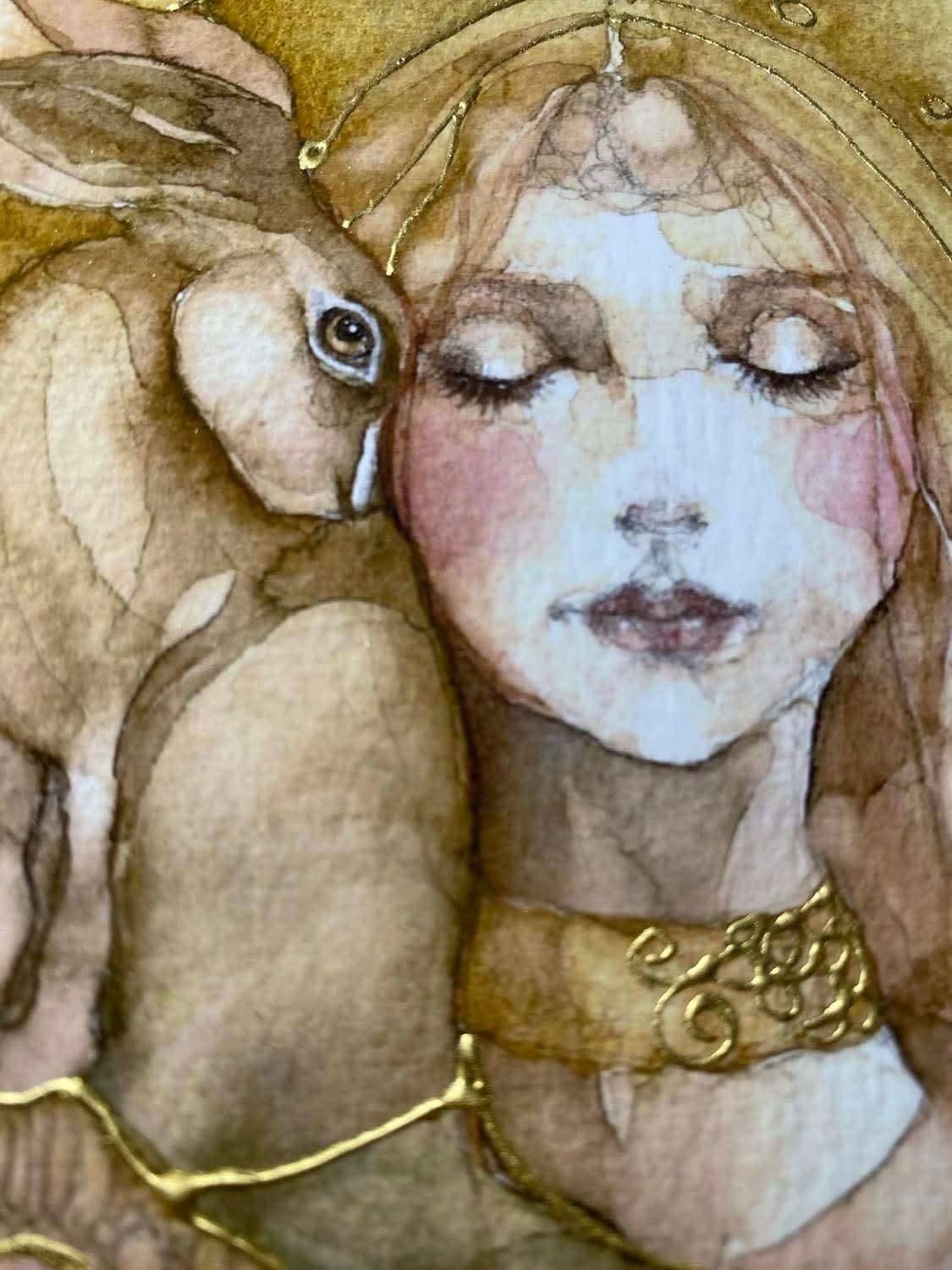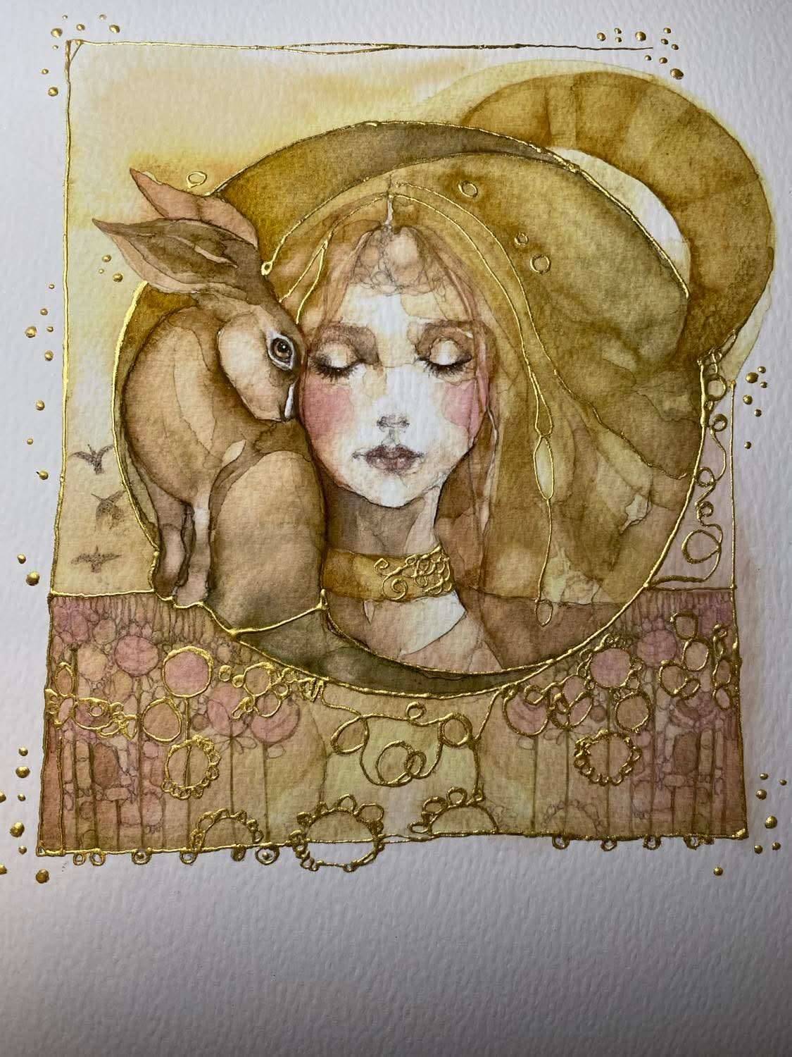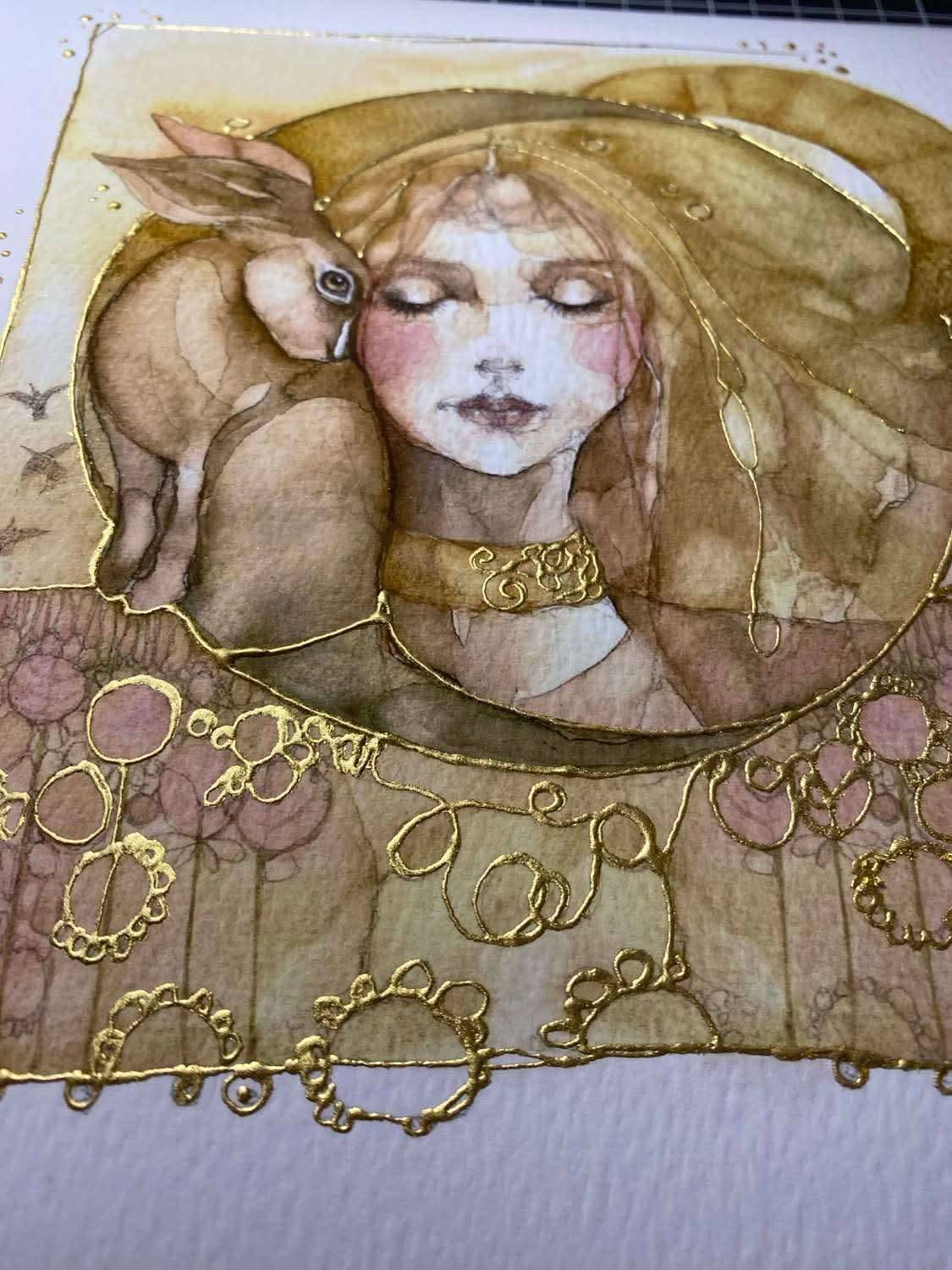 This print is taken from an original watercolour, ink and graphite artwork which has hand applied gold leaf detailing ensuring no two prints will ever be the same.