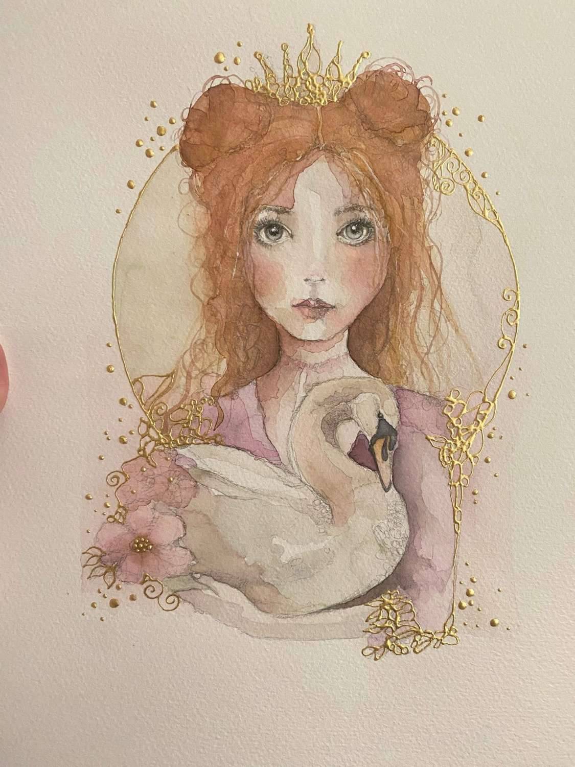 This image size is 9” in width and 7” in height and is painted using quality Winsor and Newton watercolour paints on 300gsm 10” x 14” cotton watercolour paper.