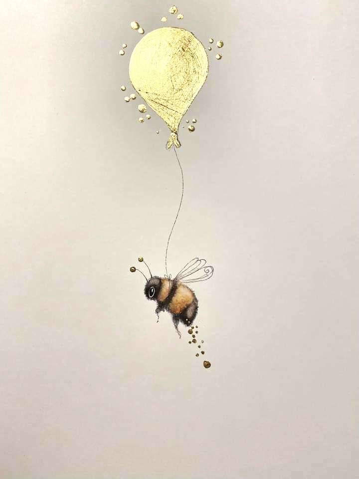 Bees are amazing wee creatures, full of life and positivity. This beautiful wee bee is off sprinkling his magic far and wide …a golden balloon should help with that adventure.
